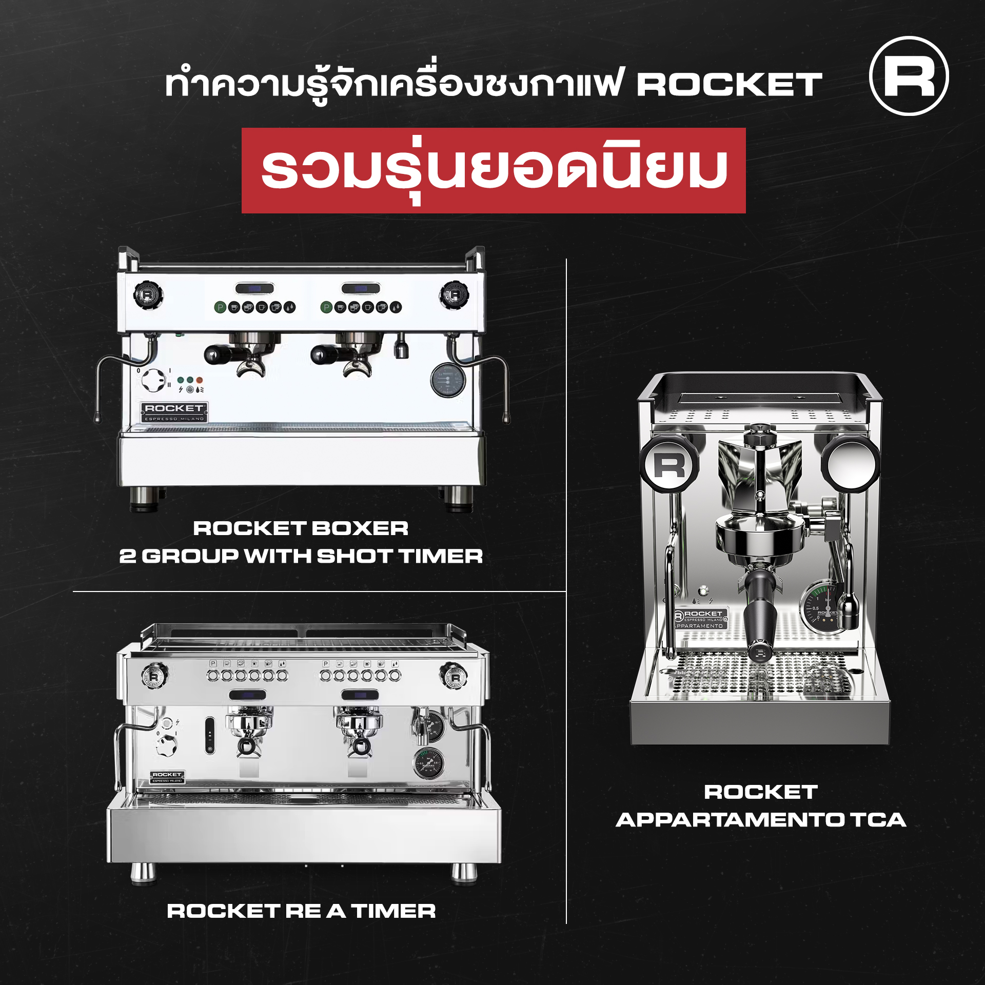 สำหรับ ร้านกาแฟหรือธุรกิจขนาดเล็ก/กลาง: ควรเลือกรุ่นที่มี 2 กลุ่มการชง หรือมากกว่า เช่น Rocket Boxer 2 Group with Shot Timer หรือ Rocket RE A Timer ซึ่งสามารถชงหลายแก้วได้พร้อมกัน และตอบสนองความต้องการลูกค้าได้ต่อเนื่อง