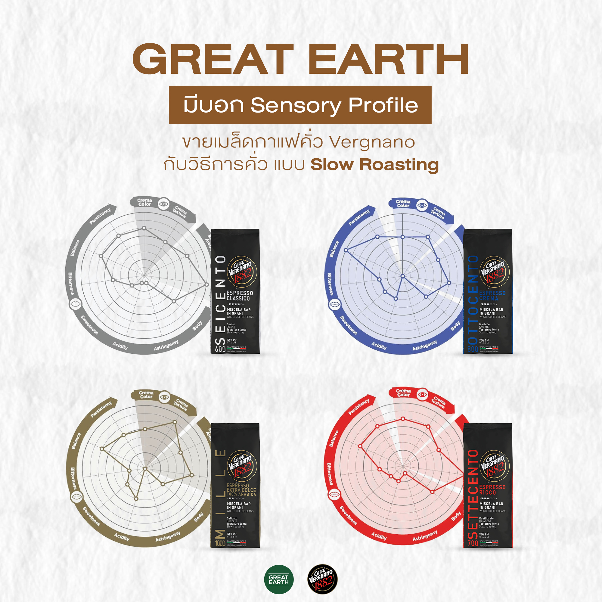 Caffè Vergnano 1882 คือผู้เชี่ยวชาญด้านกาแฟจากอิตาลีที่อยู่คู่วงการมากว่า 140 ปี โดดเด่นด้วยกรรมวิธี Slow Roasting ที่คั่วเมล็ดแต่ละล็อตอย่างพิถีพิถัน เพื่อรักษากลิ่น รส และคุณภาพให้เสถียรที่สุดในทุกถุง วันนี้ Great Earth พร้อมให้คุณเข้าถึงเมล็ดกาแฟคั่วแท้จากอิตาลี ที่มาพร้อมข้อมูลครบถ้วน ทั้งระดับการคั่ว และ Sensory Profile ที่ช่วยให้การออกแบบ เมนูกาแฟของร้านคุณ ไม่ใช่แค่เรื่องของรสชาติที่ดี แต่คือการส่งต่อ ประสบการณ์ระดับมืออาชีพ ในทุกแก้ว