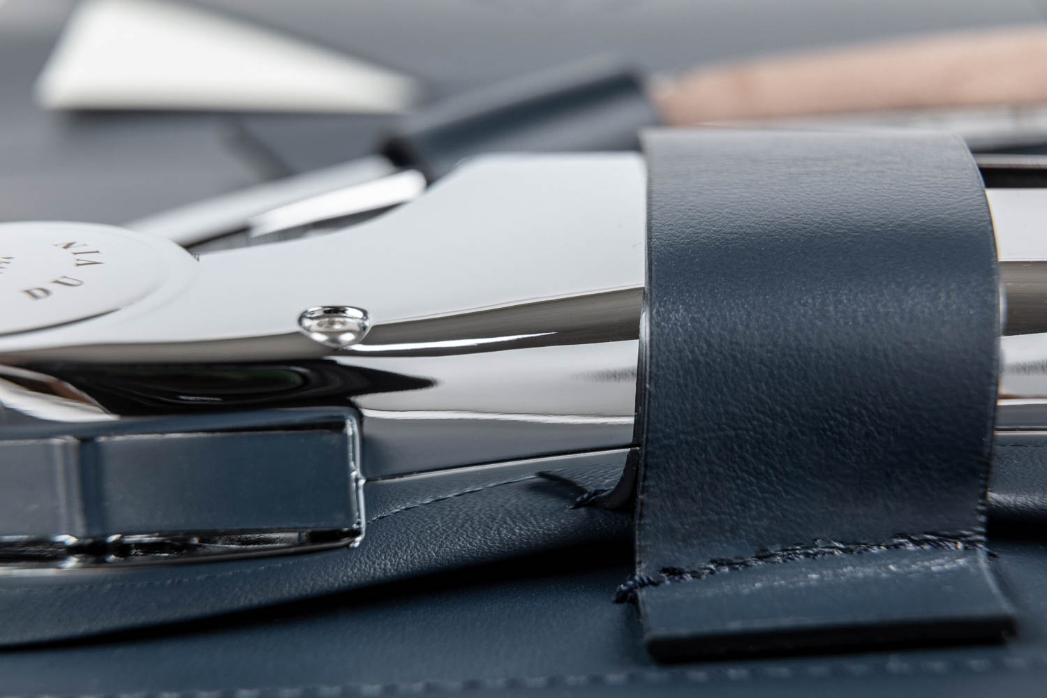 The life of leather which takes on a patina as you travel. Life of the interior leather that resists the passage of time. Long life of the Oeno Motion Wood & Chrome corkscrew.