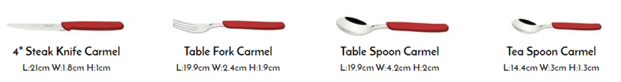 เพิ่มสีสันบนโต๊ะอาหารในแต่ละมื้อด้วย ชุด ช้อน ส้อม มีดสเต็ก และ ช้อนชา รุ่น Carmel ผลิตจากสแตนเลสคุณภาพดี และด้ามจับทำจากโพลิโพรพิลีน